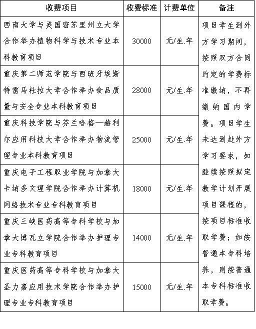 经教育部批准,西南大学等6所高校开办了中外合作办学项目。根据《中华人民共和国中外合作办学条例》和国家的有关规定,考虑到6所高校中外合作办学项目年生均教育培养成本的实际情况,以及合作双方办学协议,结合我市实际,报经市政府核同意,现将6所高校中外合作办学项目学费标准有关问题通知如下: